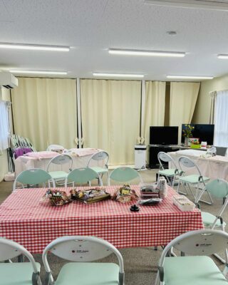 仮設住宅の集会場の空間を、テーブルクロスやヒーリング音楽で癒し空間に調えて、皆様をお迎えしました。