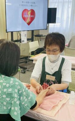 おかげ様で、14名の方に施術を受けてくださいました。身体の痛みをもたれる方、夜眠れない方等、疲れやすい等、様々なお悩みをおもちでしたが、足湯で身体をあたためて、じっくりと肩・背中をほぐし、ハンドマッサージを受けてくださいました。普段、あまり集会場には集まらないのですが・・・とお話されていた方が、チラシをみてこれは行ってみようと思い、ご家族で来てくださったのも嬉しかったです。