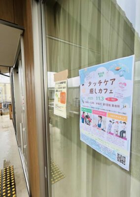 タッチケアの施術を通して、そのやさしい手に触れられること。その手のぬくもりを通して伝わってくる思い。その姿に、ケアの本質と、人と人が支え合う美しさを感じました。私も被災者の一人として、ここで生まれるつながりは単なる癒しではなく、「ともに生きる」とか「あなたはひとりじゃない」ということを気づかせてくれます。