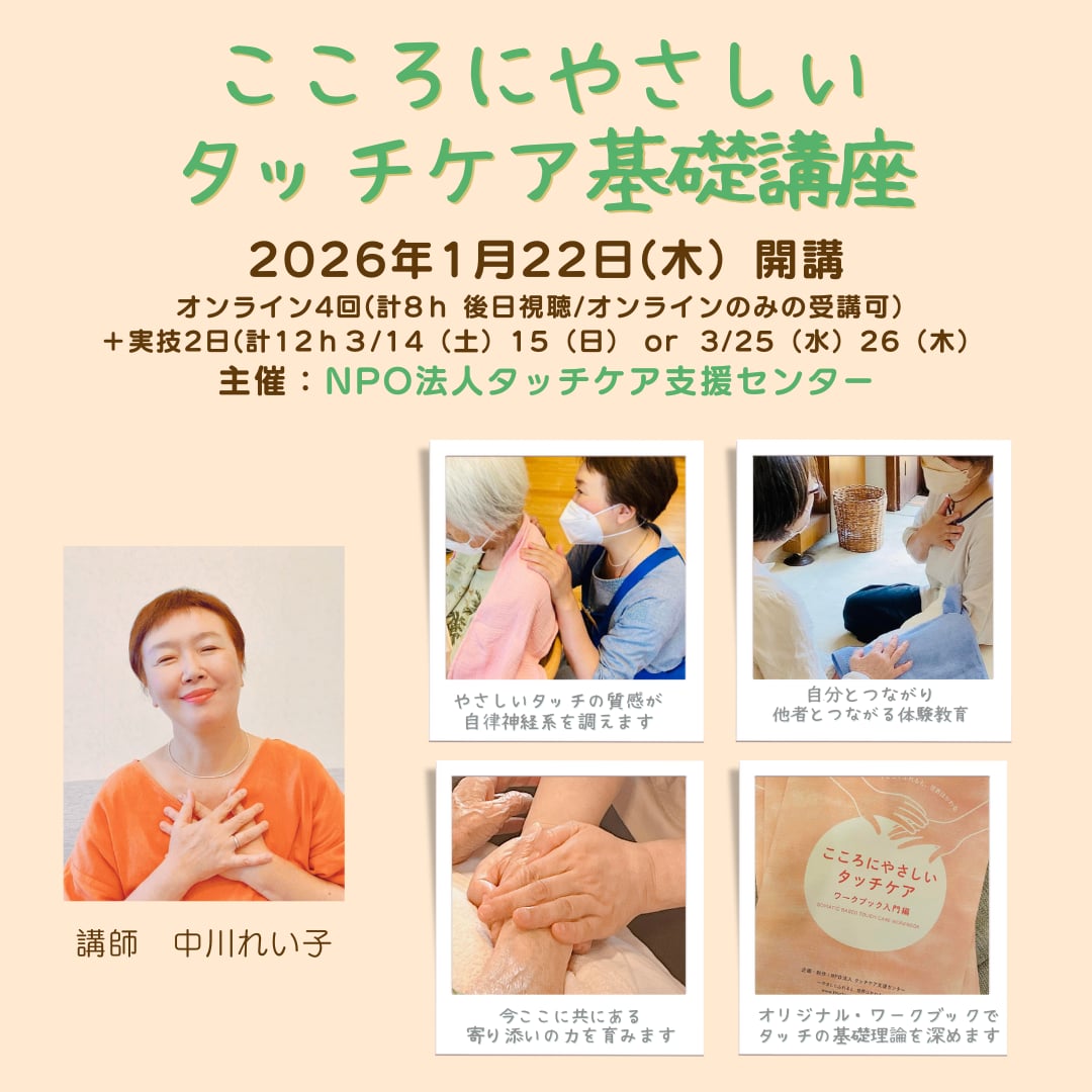 2026年1月22日開講 『こころにやさしいタッチケア』基礎講座~オンラインと動画、実技ワークショップで学ぶ~